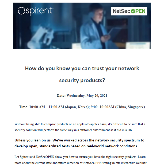 敬邀您一同參加,Spirent 與 NetSecOPEN 線上研討會
