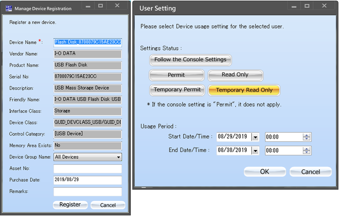 即使SD卡等沒有識別號的設備也可以單獨設置為允許/只讀/臨時許可/臨時只讀。